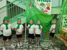 Агитбригада «Эколят» прошла с призывом присоединиться к уборке территории и клумб, чтобы сделать наш город и наш детский сад чище!